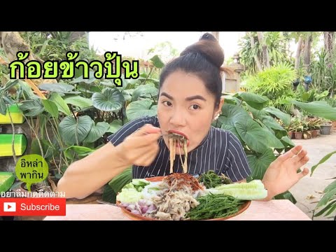 ก้อยข้าวปุ้น หอมข้าวคั่ว Eating Show Spicy Noodles Salad (asmr sounds) #Mukbang :อิหล่าพากิน